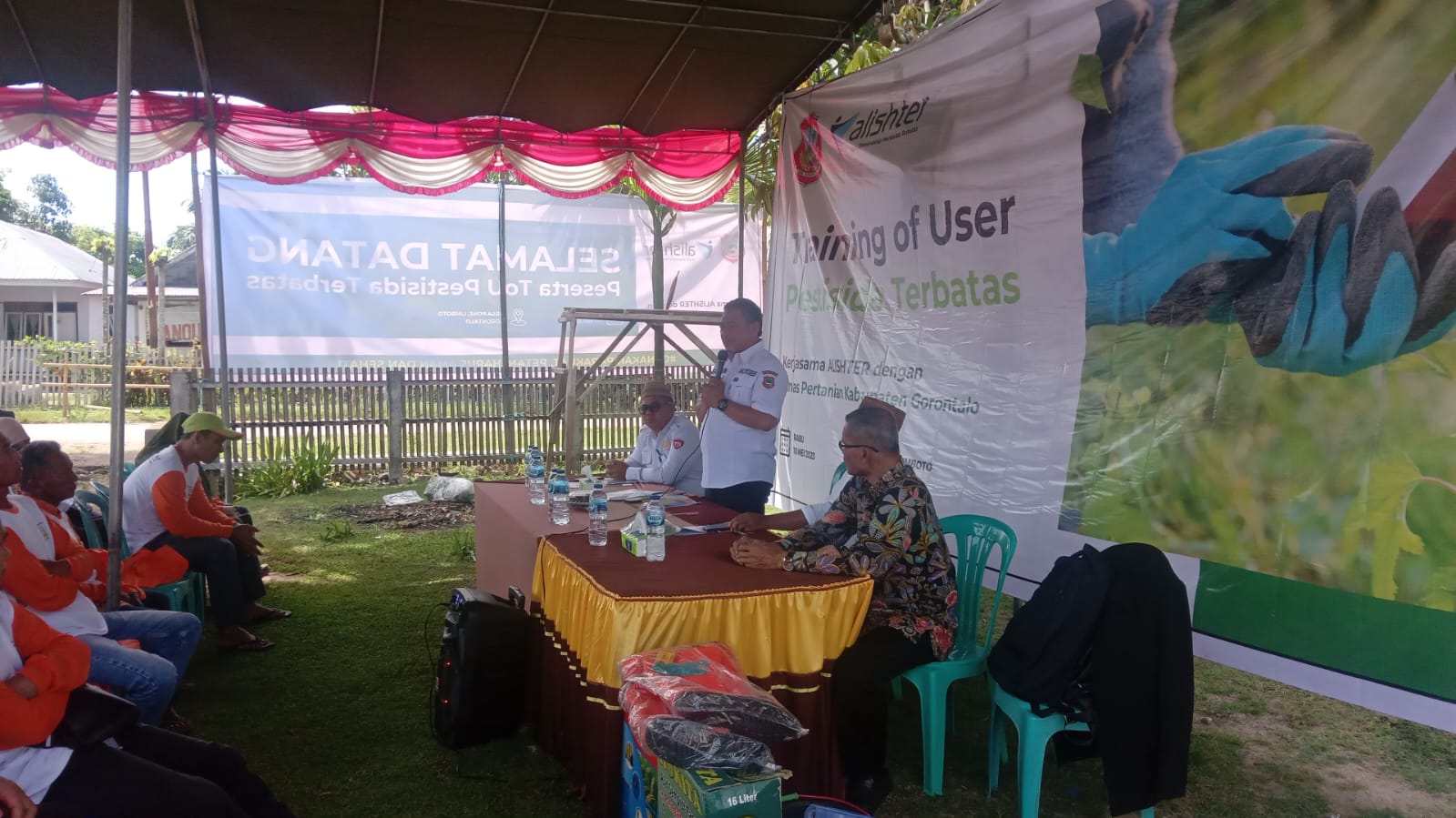 Untuk diketahui, pelatihan herbisida terbatas pakai yang dilaksanakan di Kabupaten Gorontalo pada tanggal 10 Mei 2023 dibuka oleh Kepala Dinas Pertanian Kabupaten Gorontalo, dilanjutkan pelatihan dengan materi dari narasumber berasal dari Dinas Pertanian Kabupaten Gorontalo, Dinas Pertanian Kesehatan Kabupaten Gorontalo dan ALISHTER.