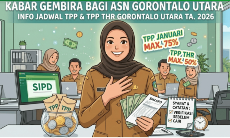 HIMPUN.ID – Kabar gembira bagi Aparatur Sipil Negara (ASN) di lingkungan Pemerintah Kabupaten Gorontalo Utara. Proses pengajuan Tambahan Penghasilan Pegawai (TPP) untuk bulan Januari 2026 serta TPP Tunjangan Hari Raya (THR) tahun anggaran 2026 resmi dibuka bulan ini.