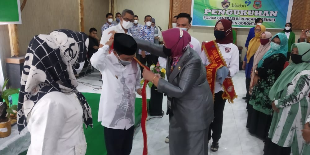 HIMPUN.ID – Kepala Perwakilan BKKBN Provinsi Gorontalo, Hartati Suleman, mengkukuhkan Bupati Gorontalo Nelson Pomalingo, dan Forry Armin Naway sebagai Ayah Genre Provinsi Gorontalo dan Bunda Genre Kabupaten Gorontalo periode 2021-2024, Rabu (06/01/2021).