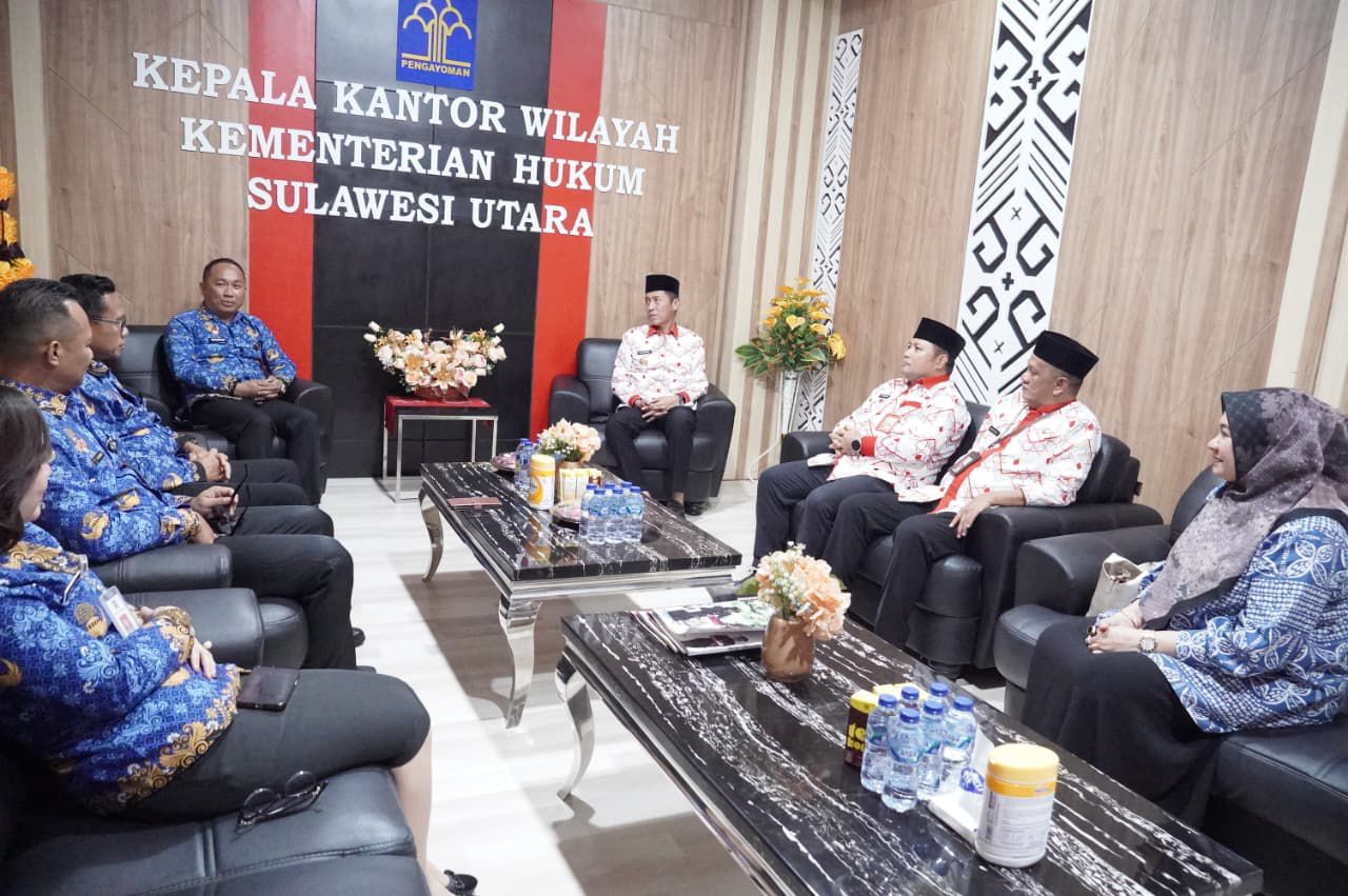 Kunjungan ini dilakukan guna memperkuat kolaborasi di bidang hukum, perlindungan aset, serta menyambut kepemimpinan Kepala Kantor Wilayah Kemenkum Sulut yang baru, Hendrik Pagiling.