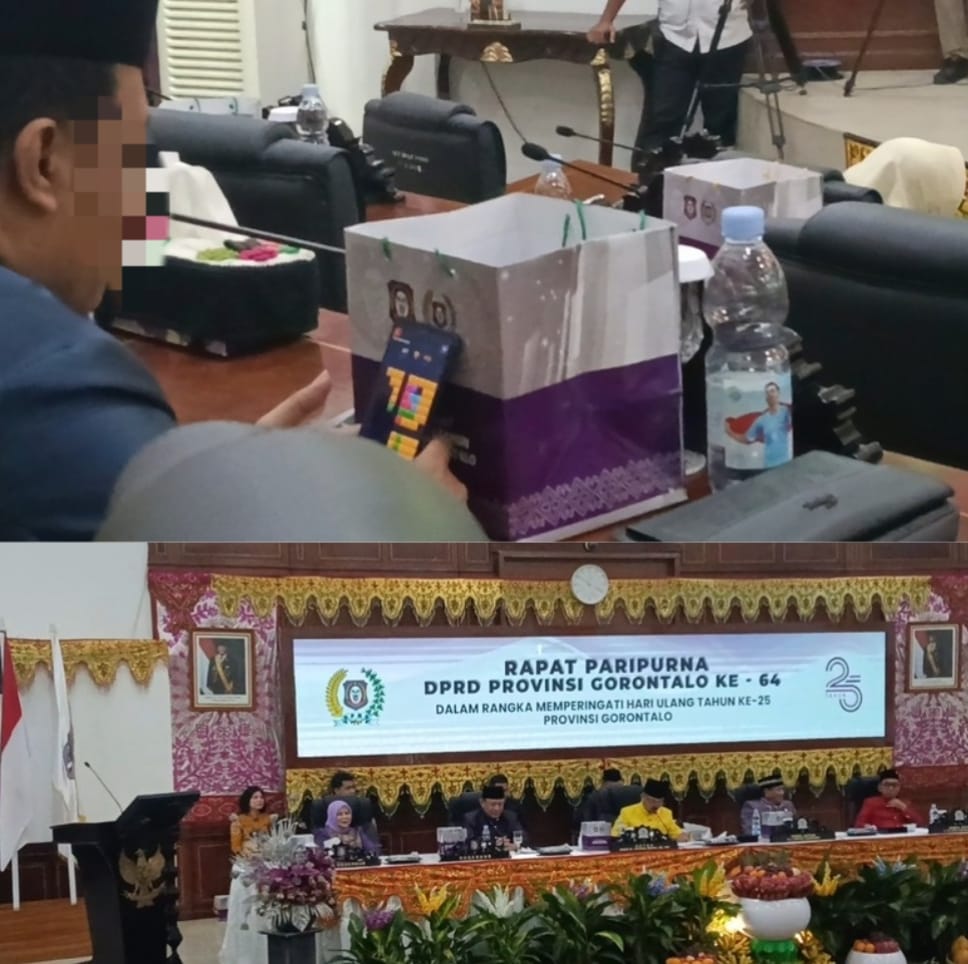 HIMPUN.ID – Suasana khidmat Rapat Paripurna ke-64 DPRD Provinsi Gorontalo dalam rangka memperingati Hari Ulang Tahun (HUT) ke-25 Provinsi Gorontalo, Jumat 5 Desember 2025, tercoreng dengan dugaan tindakan tidak etis seorang anggota dewan.