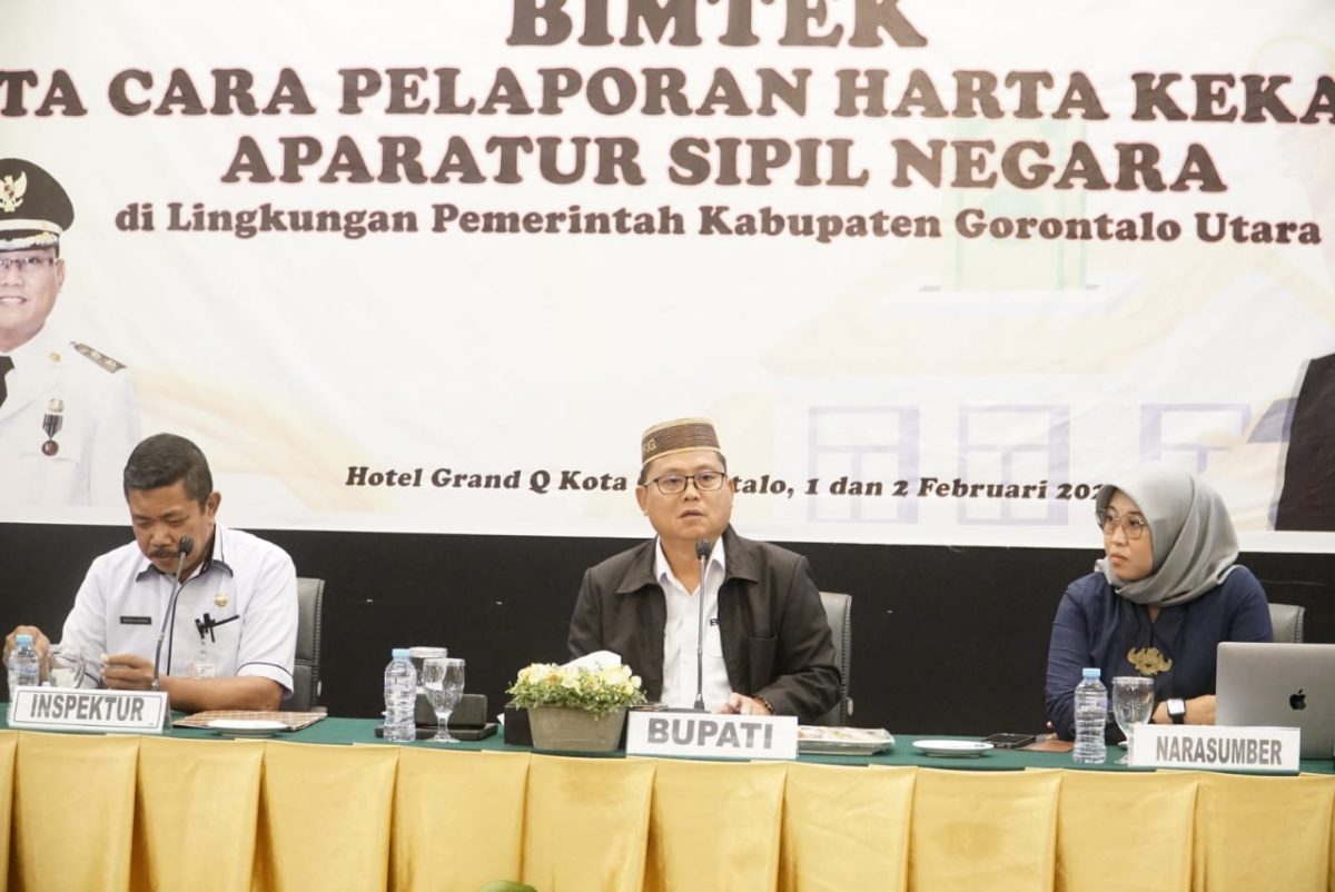 Sementara itu, terkait dengan Bimbingan Teknis (Bimtek) tata cara pelaporan harta kekayaan Aparatur Sipil Negara (ASN), orang nomor satu di Gorontalo Utara ini meminta para peserta mengikuti dengan baik.