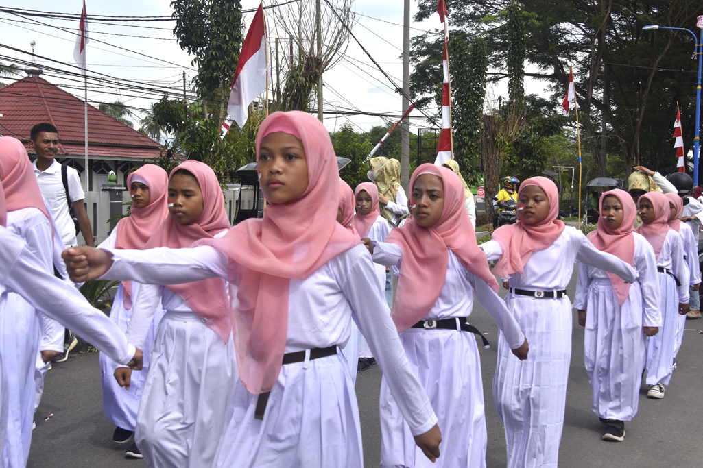 Ratusan siswa-siswi Sekolah Dasar (SD) se-Kabupaten Bone Bolango berpartisipasi dalam lomba gerak jalan yang diselenggarakan untuk memperingati Hari Ulang Tahun (HUT) Kemerdekaan RI ke-80.