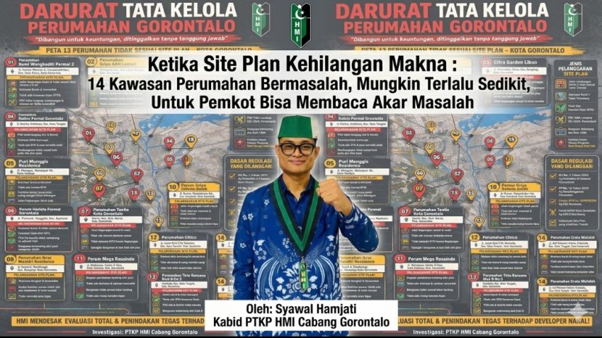 HIMPUN.ID – Polemik site plan di Kota Gorontalo tidak bisa lagi dipandang sebagai persoalan administratif semata, melainkan telah menjelma menjadi krisis tata kelola pembangunan yang nyata dan sistemik.