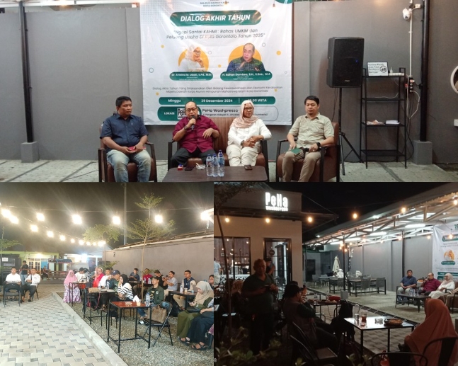 Dialog akhir tahun tersebut mengangkat tema “Ngopi santai KAHMI: Bahas UMKM dan peluang usaha di Kota Gorontalo Tahun 2025.*