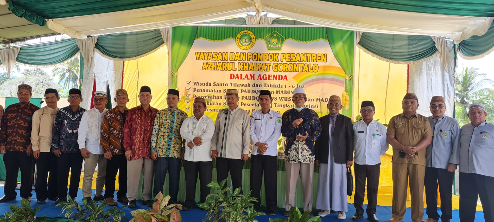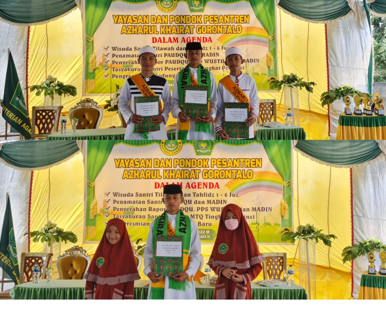 Wisuda Tilawah dan Tahfidz yang dilaksanakan Pondok Pesantren Azharul Khairat Gorontalo itu, dirangkaikan dengan penamatan santri pada satuan Pendidikan PAUDQU dan MADIN Azharul Khairat Gorontalo.