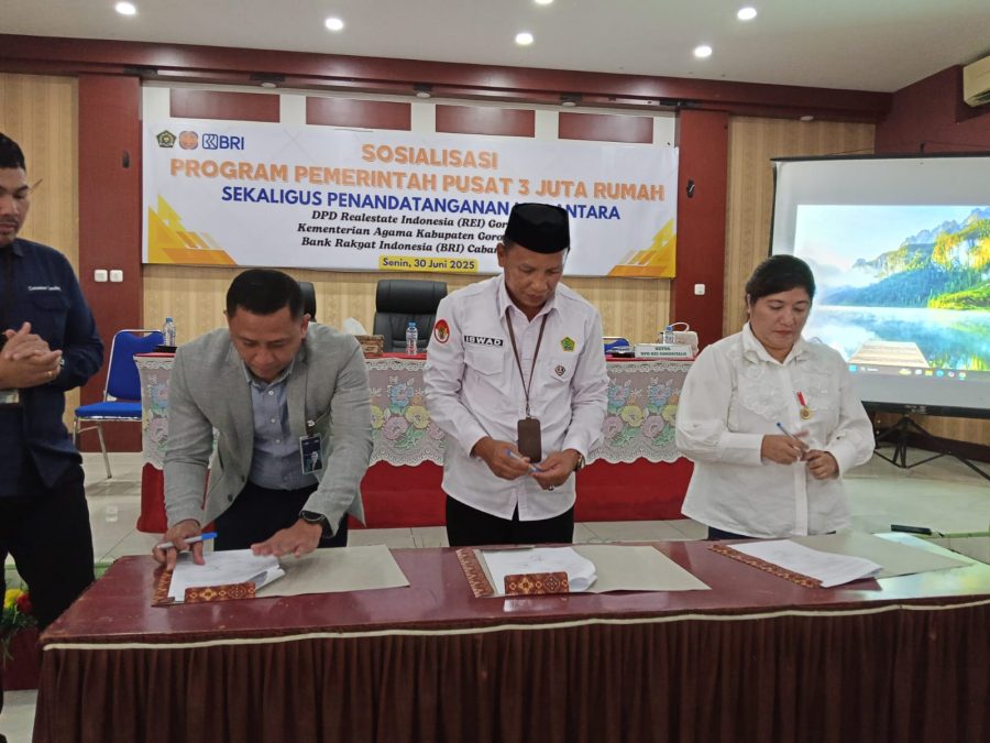 Hal ini ditandai dengan sosialisasi yang dirangkai dengan penandatanganan Nota Kesepahaman (MoU) antara DPD REI Provinsi Gorontalo, Kementerian Agama Kabupaten Gorontalo, dan BRI Cabang Limboto yang berlangsung sukses di Aula Kemenag Kabupaten Gorontalo, Senin 30 Juni 2025.