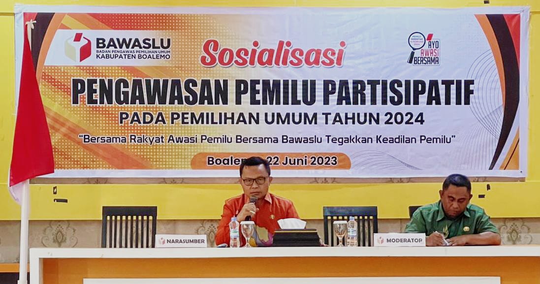 Pernyataan itu disampaikan pada kegiatan sosialisasi pengawasan partisipatif pemilu 2024, di Hotel Grand Amalia, Kamis 22 Juni 2023.