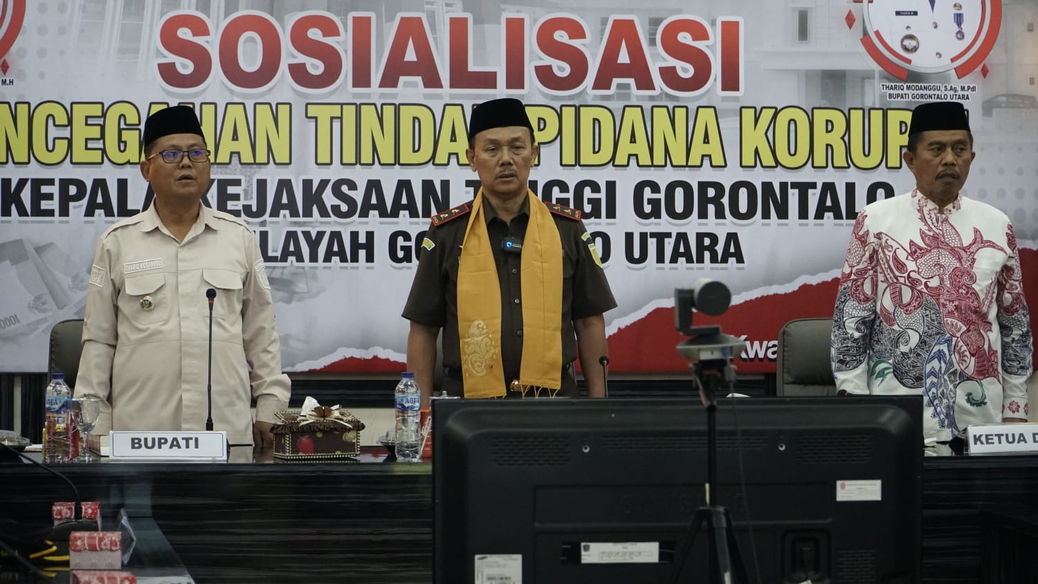 Kunjungan kerja Kepala Kejaksaan Tinggi Gorontalo tersebut dirangkaikan dengan sosialisasi pencegahan tindak pidana korupsi, di Ruang Rapat Tinepo Kantor Bupati.