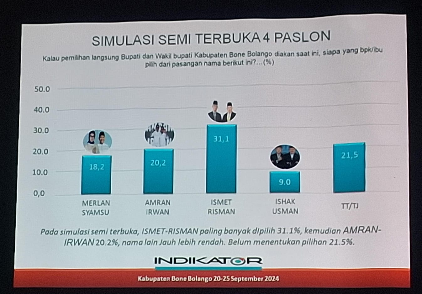 “Kembali @indikatorcoid jadi korban pemalsuan survei. Kali ini terjadi Kabupaten Bone Bolango. Modusnya salah satu kubu menyebar slide palsu dengan mengatasnamakan Indikator Politik Indonesia di medsos maupun media lokal. Padahal survei terakhir Indikator terakhir kalinya di sana bulan Agustus 2024 sebelum penetapan paslon. Itupun hasilnya berbeda dengan survei yang diklaim dari Indikator yg dikatakan dilakukan pada September. Hati-hati jika calon kepala daerah belum terpilih aja sudah menipu begini, apalagi nanti kalau sdh mendapat mandat,” tulis akun Instagram @burhanuddinmuhtadi yang diunggah Rabu 16 Oktober 2024.