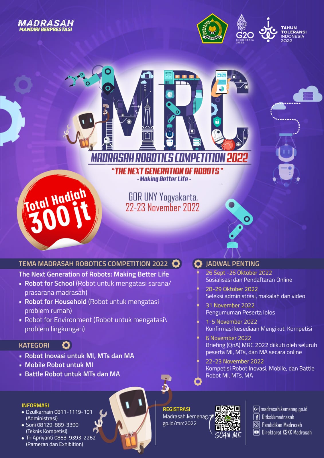Info selengkapnya, sila klik: Kompetisi Madrasah Robotik 2022