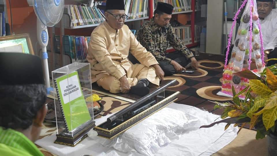 Ritual adat pencucian batang raja berlangsung di kantor Perpustakaan Boalemo, Kamis 25 Agustus 2022.