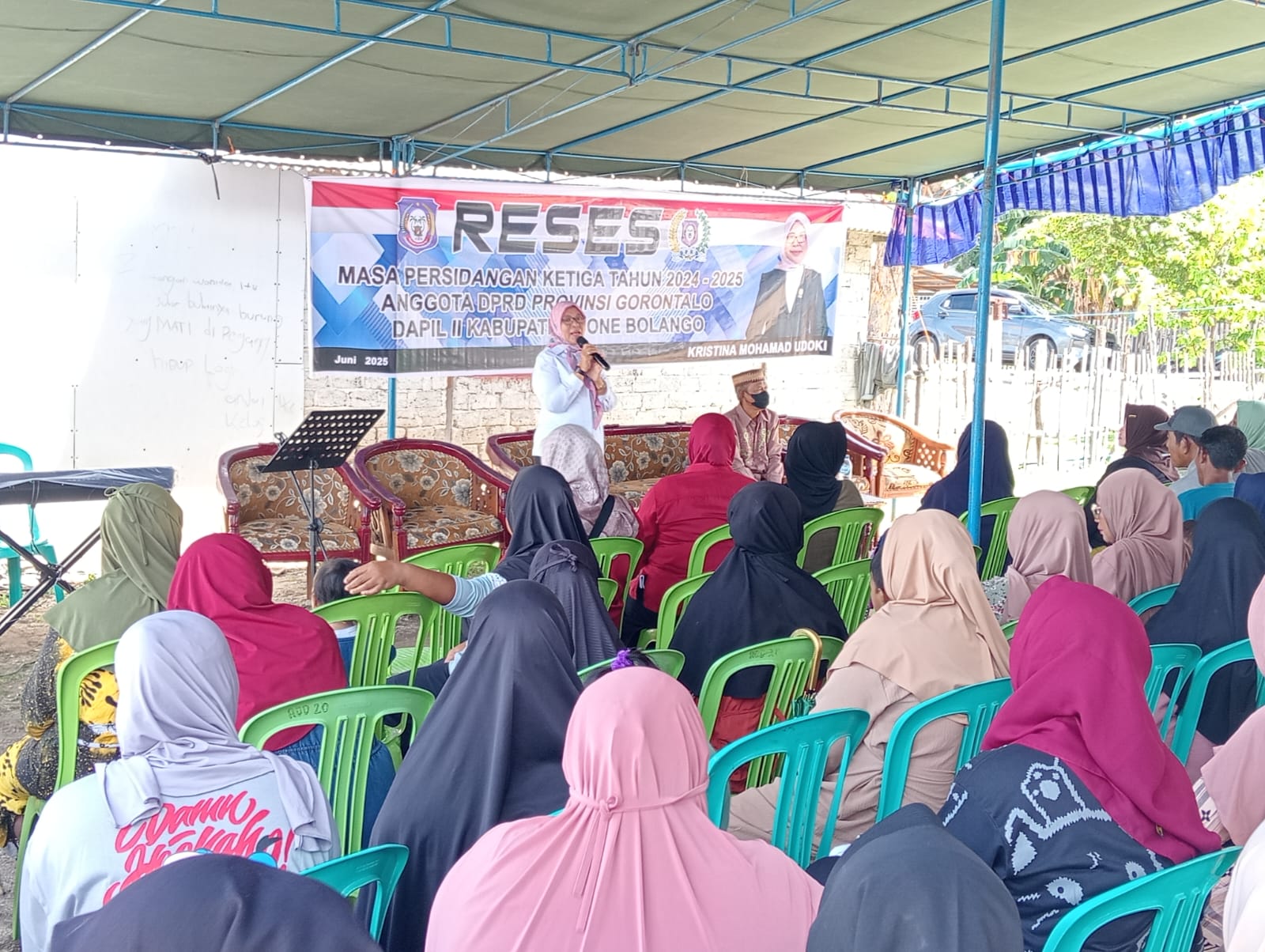 HIMPUN.ID – Anggota Dewan Perwakilan Rakyat Daerah (DPRD) Provinsi Gorontalo Daerah Pemilihan (Dapil) II Bone Bolango, Kristina Mohamad Udoki, yang akrab disapa Femmy Udoki, menggelar reses terakhir pada masa sidang ketiga tahun 2024-2025 di Desa Botubarani, Kecamatan Kabila Bone.